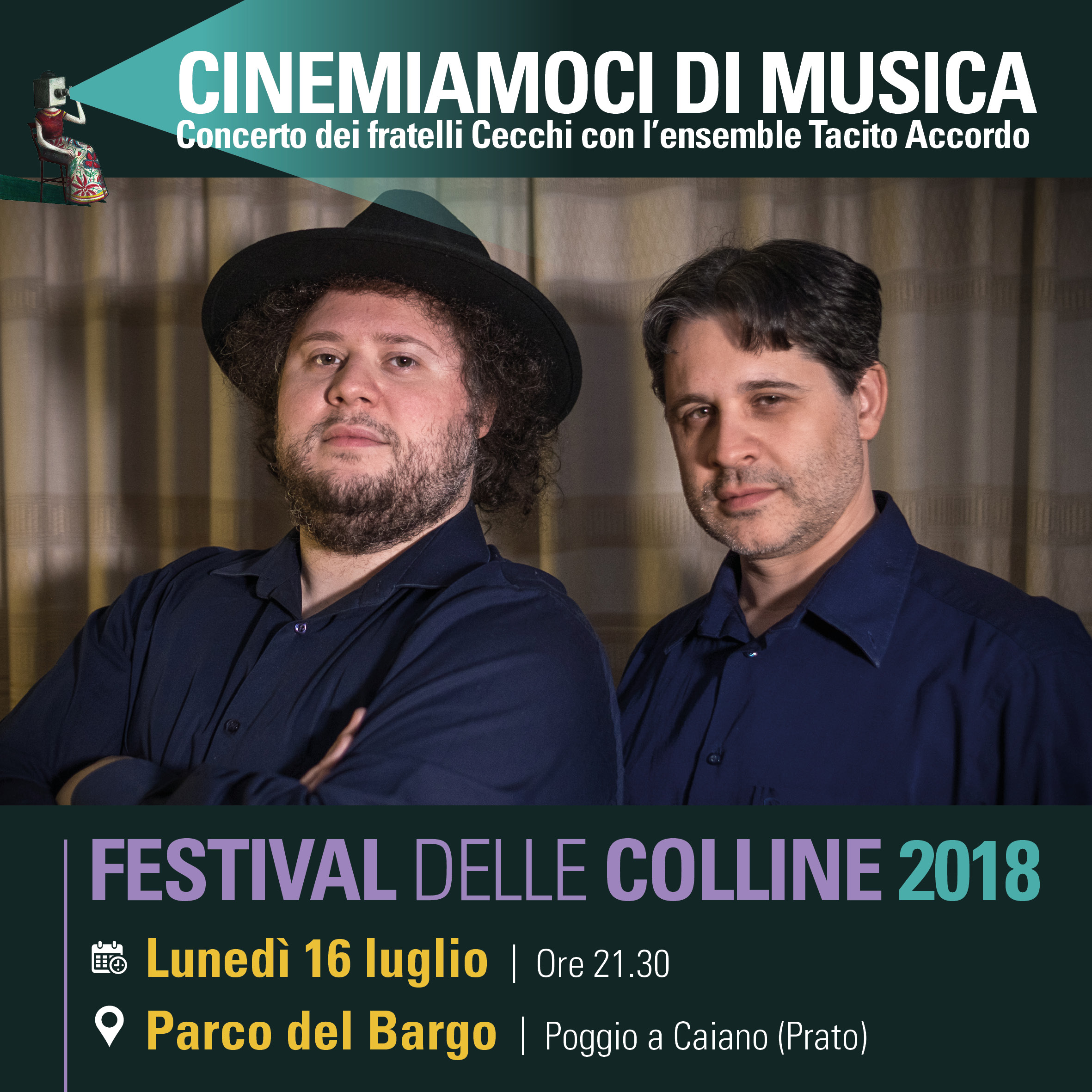 “Cinemiamoci di musica” è il progetto/spettacolo che intreccia brani dedicati ai mestieri della settima arte e alla musica da film, e dove non mancano repechage del loro repertorio cantautorale. Tutto in grande equilibrio tra ironia e poesia. E con il supporto dell’ensemble Tacito Accordo, arrangiamenti a cura di Tiziana Gacci.